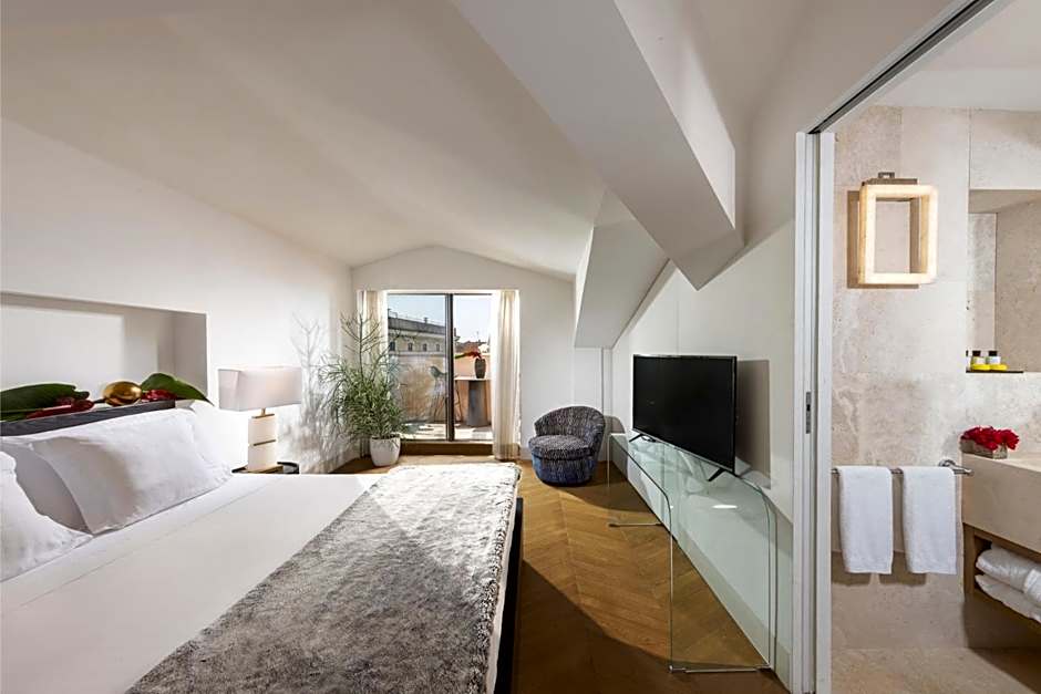 Overlooking the Colosseum, this elegant suite features a mini gym and wellness area with a hot tub, Turkish bath and chromotherapy lighting.